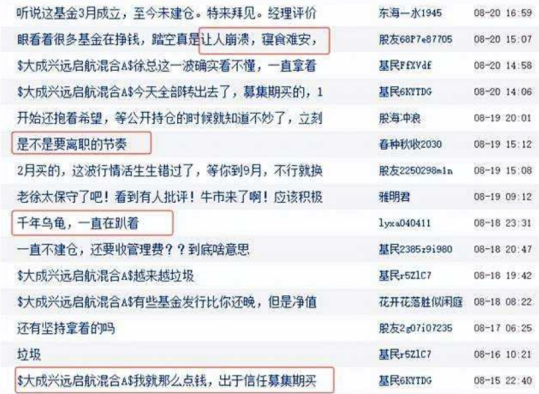 如此鲜明的反差,让持有人的不满情绪像被点燃火药般爆发,人们难以按耐踏空焦虑,不少怨言随之而来。