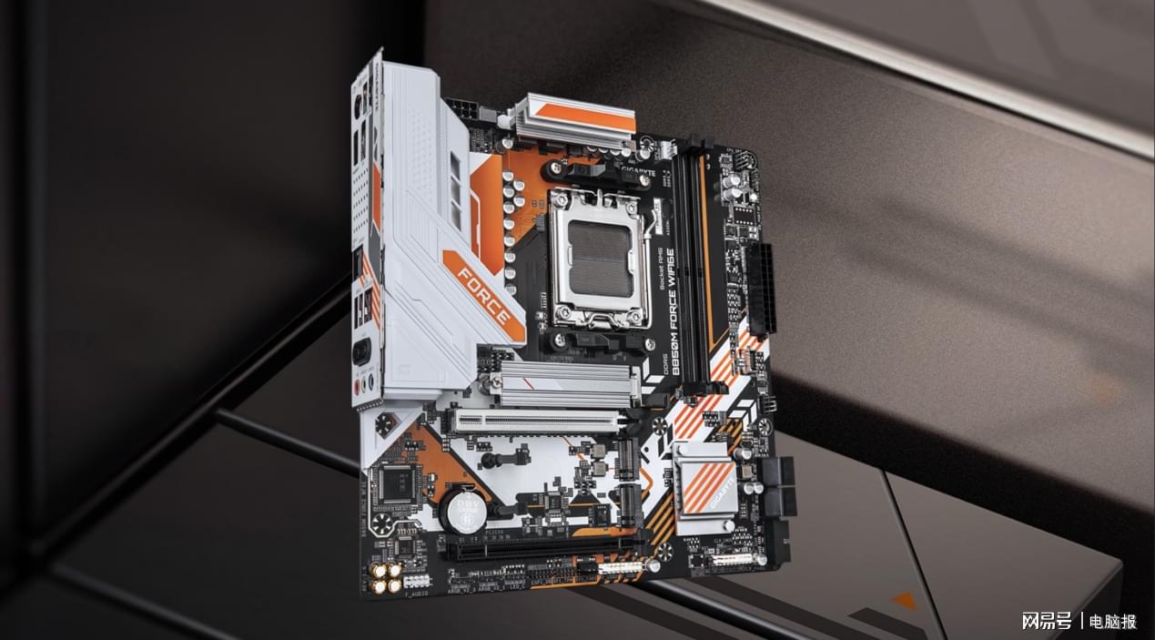 推荐锐龙5 9500F搭配B850主板,这款技嘉战鹰B850M FORCE WIFI6E就值得考虑。该主板通过黑橙白三色涂装,打造出了电竞感满满的涂装,极具辨识度,无论是白色主机还是黑色主机都能搭配。供电方面,技嘉战鹰B850M FORCE WIFI6E采用的是8+2+2相供电方案,搭配优质电感和固态电容,并且使用了6 层服务器级PCB基板,考虑到锐龙5 9500F解锁功率限制后的满载功耗也不过130W出头,这样的配置完全够用。主板提供了2条DDR5内存插槽,配合技嘉AI D5黑科技2.0,最高可超频至DDR5 9600MT/S,对高频内存具有很好的支持。